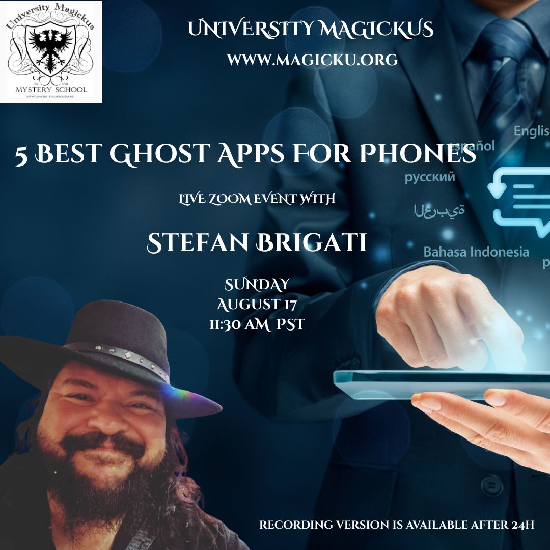 Join us Sunday August 17th @ 11:30am PST / 2:30pm EST for 5 Best Ghost Apps For Phones with Stefan Brigati