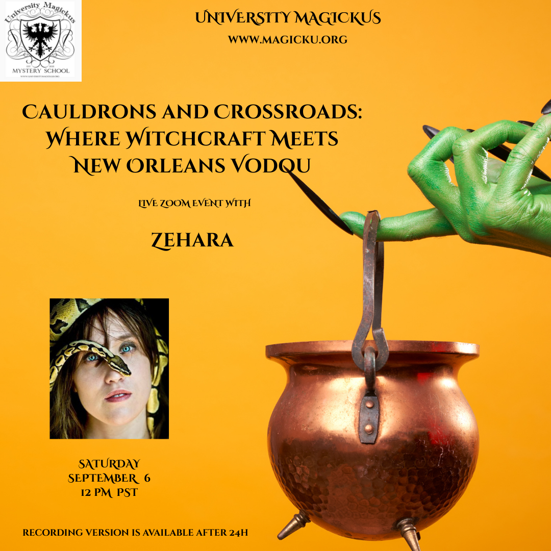 Join us Saturday September 6th @ 12pm PST / 3pm EST for Cauldrons and Crossroads: Where Witchcraft Meets New Orleans Vodou with Zehara