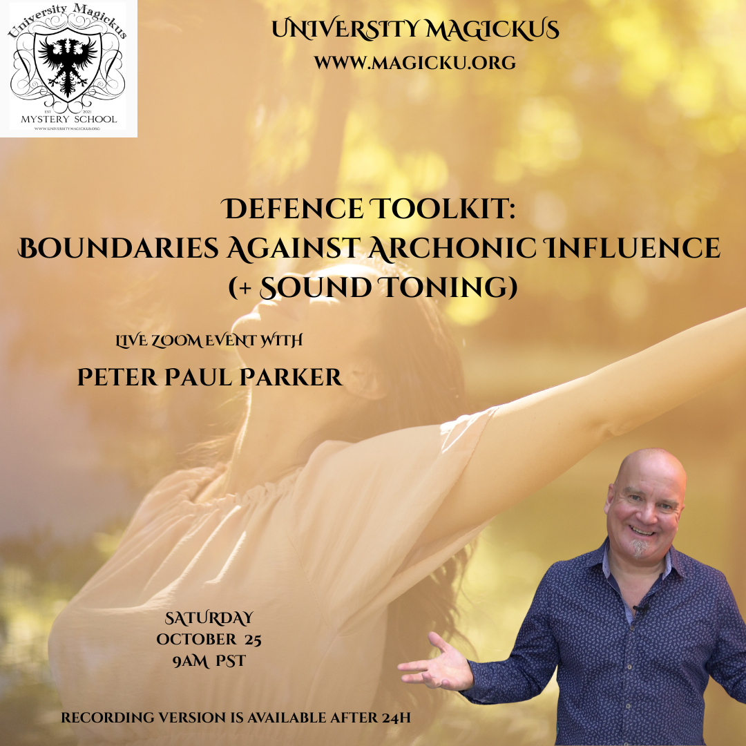 Join us Saturday October 25th @ 10am PST / 1pm EST Defence Toolkit: Boundaries Against Archonic Influence (+ Sound Toning) With Peter Paul Parker