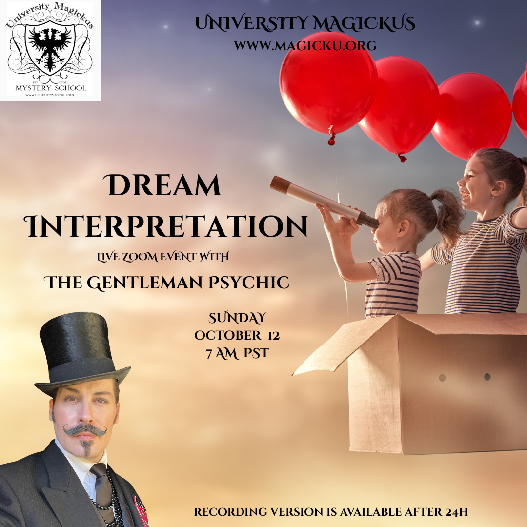 Join us Sunday October 12th @ 7am PST / 10am EST for Dream Interpretation with The Gentleman Psychic
