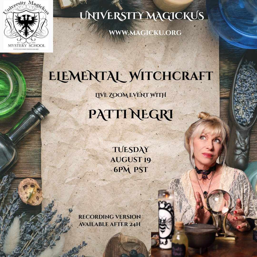 Join us Tuesday August 19th @ 6pm PST / 9pm EST for Elemental Witchcraft with Patti Negri