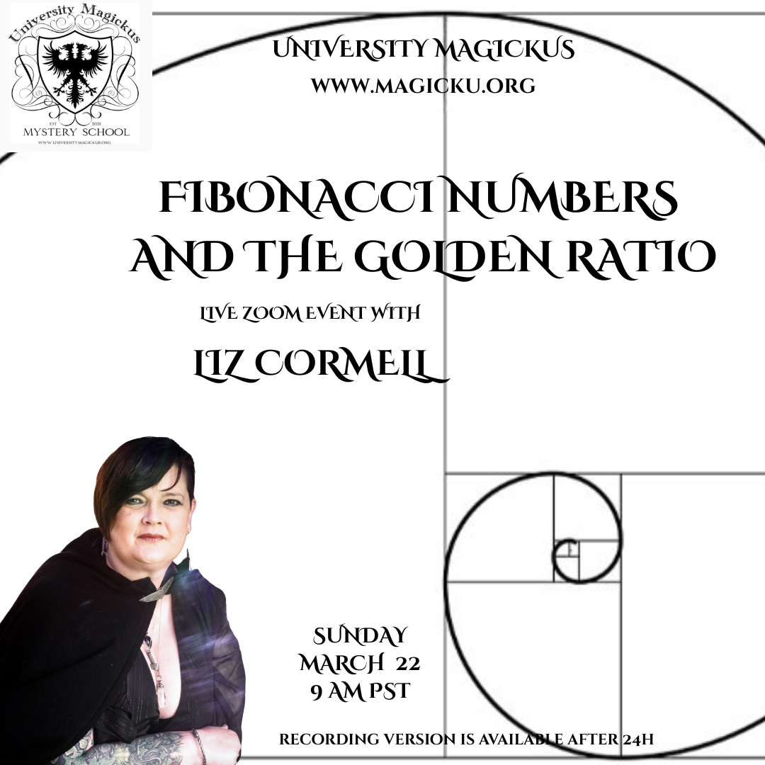 Join us Sunday March 22th @ 9am PST / 12pm EST for Fibonacci Numbers and the Golden Ratio with Liz Cormell