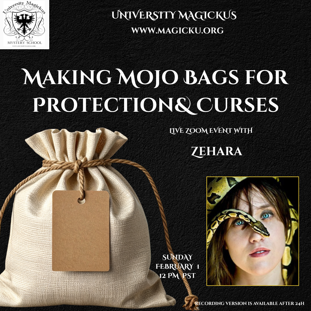 Join us Sunday February 1st 12 PM PST/ 15 PM EST for Making Mojo Bags for Protection with Zehara