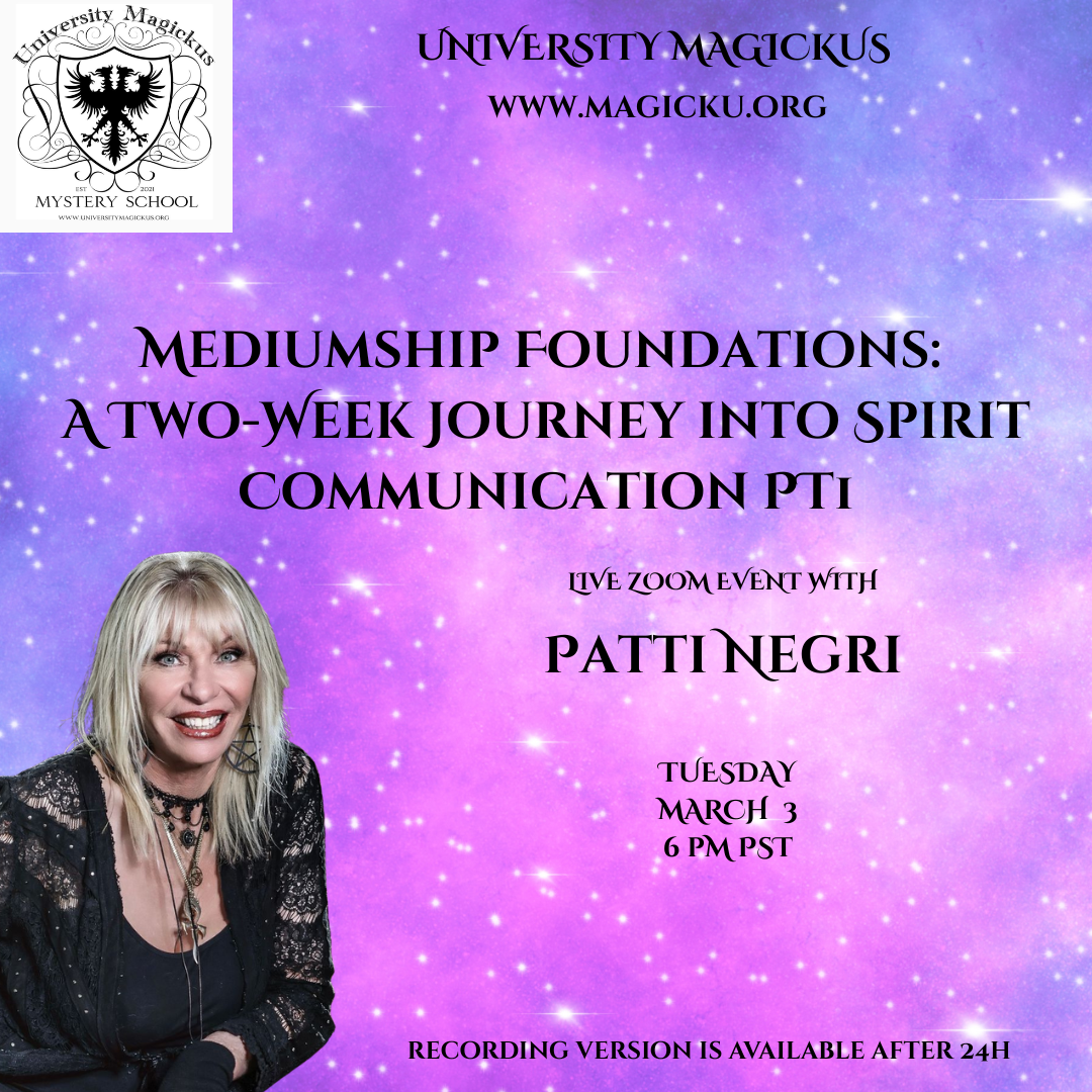 Join us Tuesday March 3rd @ 6pm PST / 9pm EST for Mediumship Foundations: A Two-Week Journey into Spirit Communication PT1 with Patti Negri