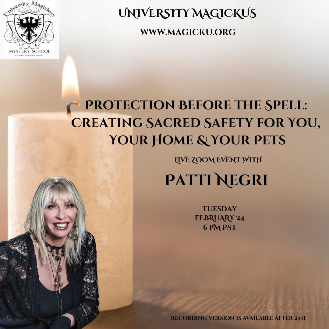 Join us Tuesday February 24th @ 6pm PST / 9pm EST for Protection Before the Spell: Creating Sacred Safety for You, Your Home & Your Pets with Patti Negri