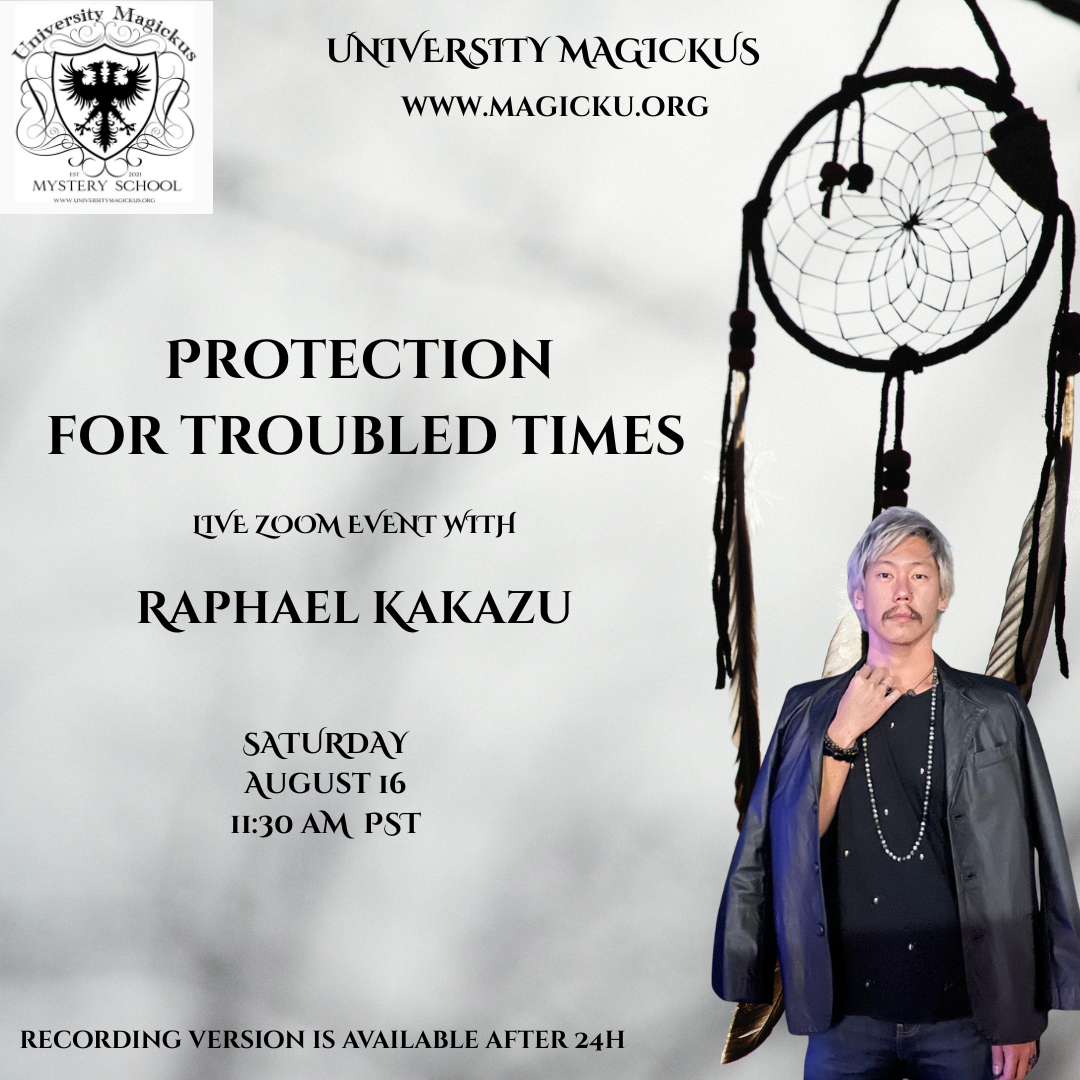 Join us Saturday August 16th @ 11:30am PST / 2:30pm EST for Protection for troubled times with Raphael Kakazu