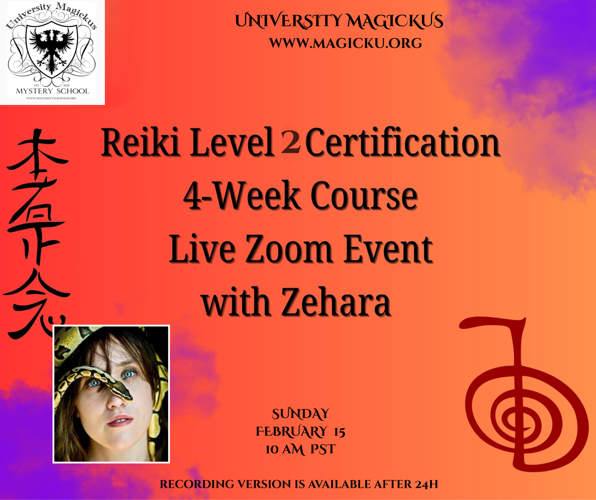 Join us Sunday February 15th 10 AM PST/ 1 PM EST for Reiki Level 2 Certification Course with Zehara PT1