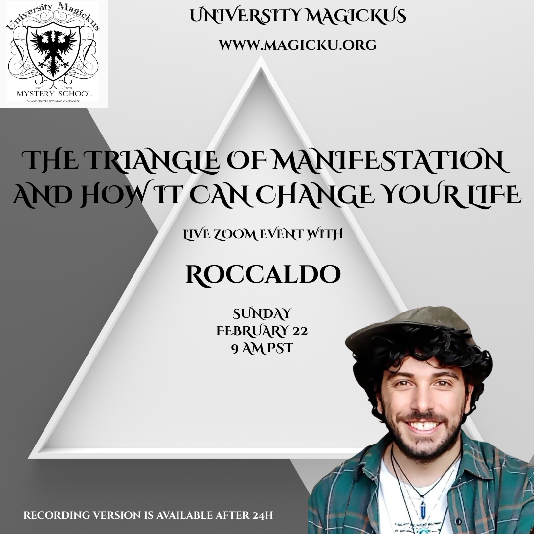 Join us Sunday 22th february @ 9AM PST/ 12PM EST THE TRIANGLE OF MANIFESTATION AND HOW IT CAN CHANGE YOUR LIFE with Roccaldo